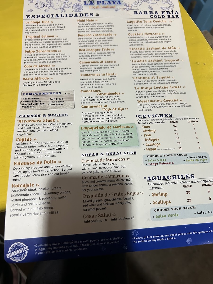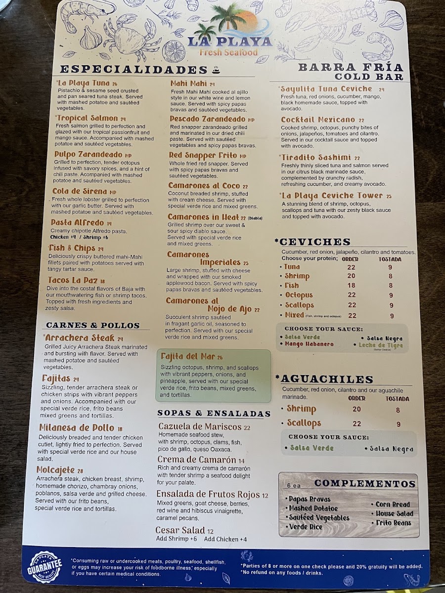 La Playa Mexican Food & Mariscos Menu (Update 2025)